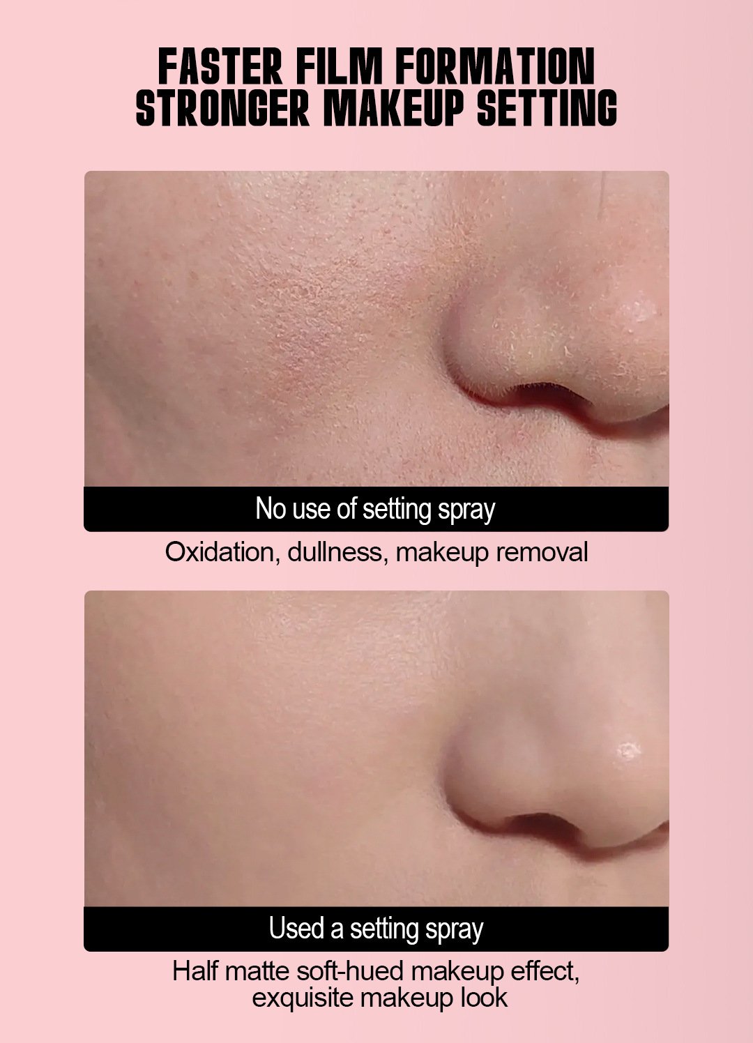 new setting spray micron mist technology use kore, ja ultra-fine spray diye skin-e evenly boshe. Fast film-forming formula instantly makeup lock kore, oil & sweat control kore, kono sticky feel nai. Daily makeup, party, wedding ba long outing er jonno perfect.