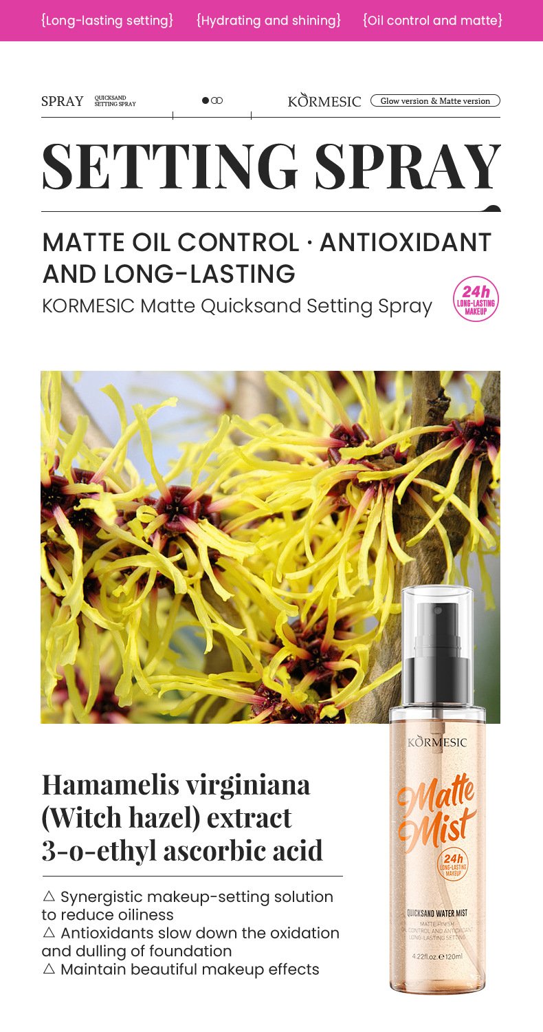 Ei KORMESIC Matte Sand Flow Setting Spray micro-mist technology use kore, ja makeup evenly set kore ar cakey look prevent kore। Oil control effect thakar jonno oily & combination skin er jonno perfect। Lightweight formula easily absorb hoy, heavy feel দেয় না।