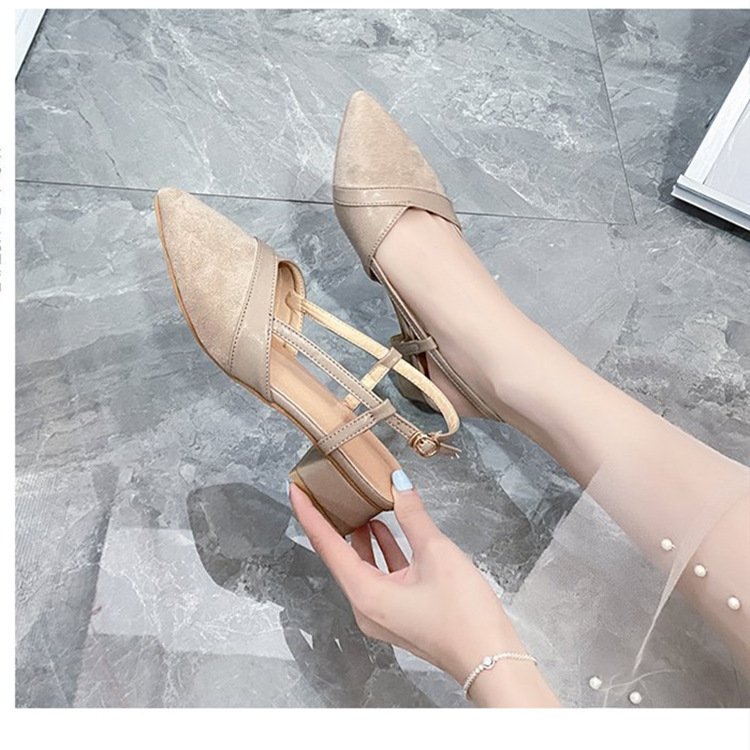 Little Fragrance Baotou Block Heel Single Shoes Women's Pointed Toe Summer 2025 New One-line Belt Fairy Back Heel SandalsLittle Fragrance Baotou Block Heel Single Shoes Women’s Pointed Toe Summer 2025 New One-line Belt Fairy Back Heel Sandals