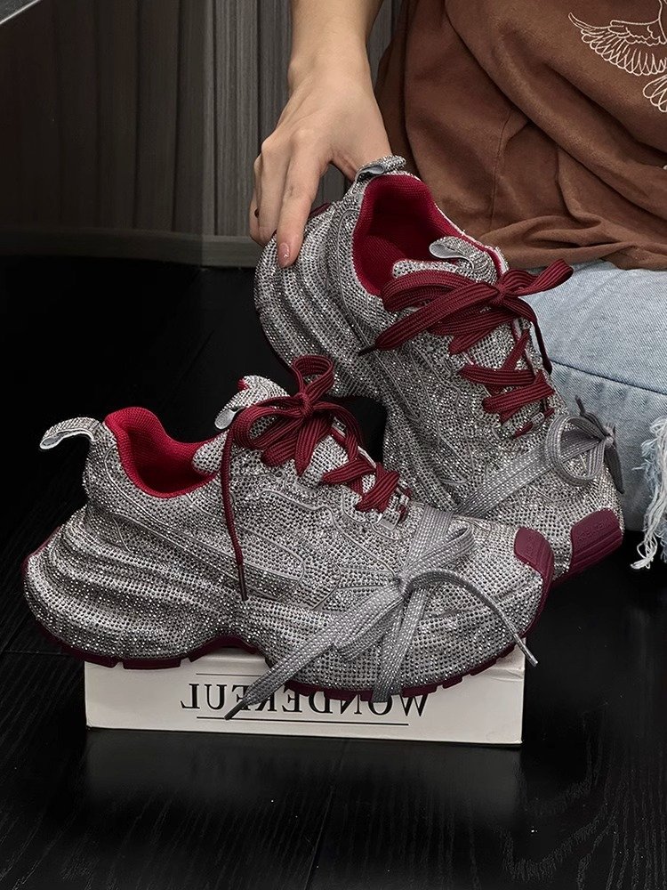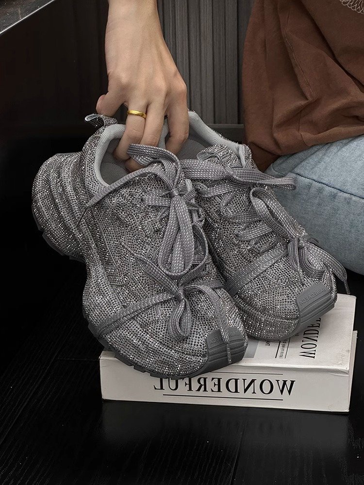🌟 স্ট্যারি রাইনস্টোন ড্যাডি শুজ – ২০২৪-এর অটামের চকচকে স্টাইল স্টেটমেন্ট! 👟✨ ৫cm থিক সোল, লেস-আপ ডিজাইন – আরাম আর ট্রেন্ডের পারফেক্ট কম্বো! 🍂